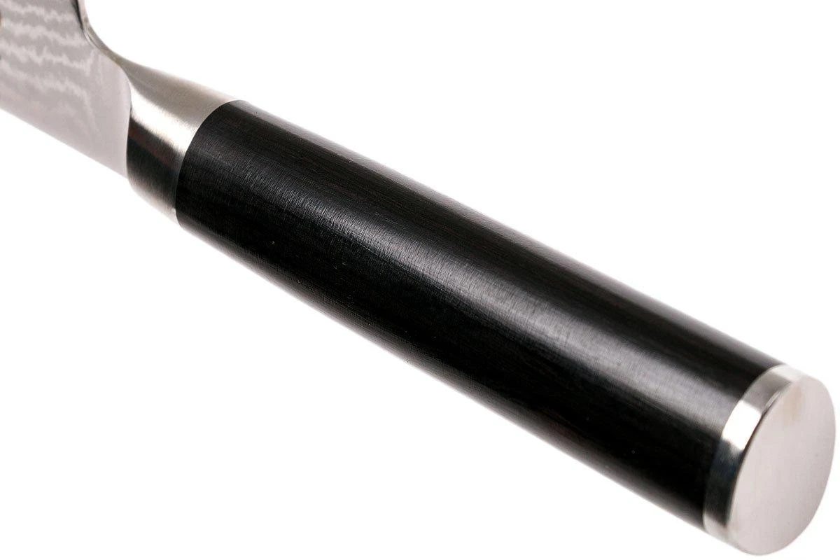 La colección Shun Classic está compuesta por preciosos cuchillos de cocina con acero de damasco de 32 capas. El núcleo VG-MAX asegura que el cuchillo es increíble de usar. Los mangos son de madera laminada de Pakka y tienen una forma asimétrica. Esta colección de cuchillos es una de las más extensas del mundo. Por su aspecto y por sus excelentes propiedades de corte, este cuchillo es un placer absoluto para la vista e increíble de usar.
